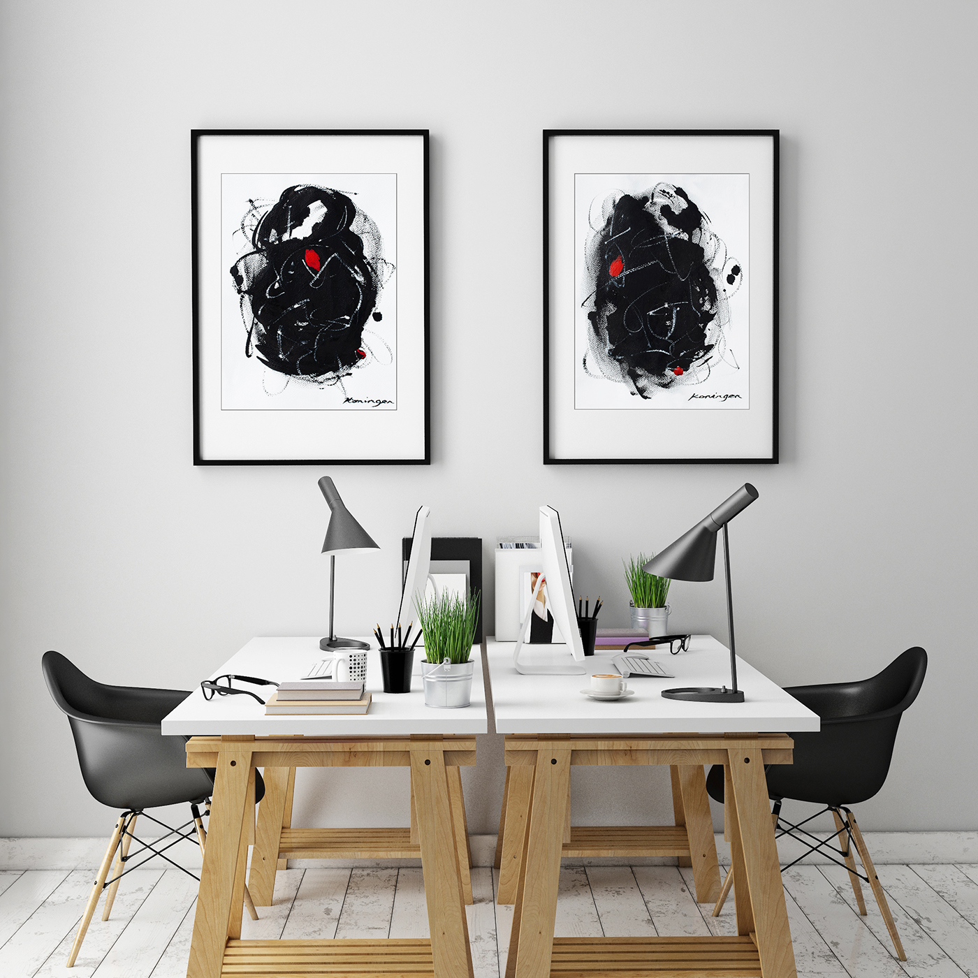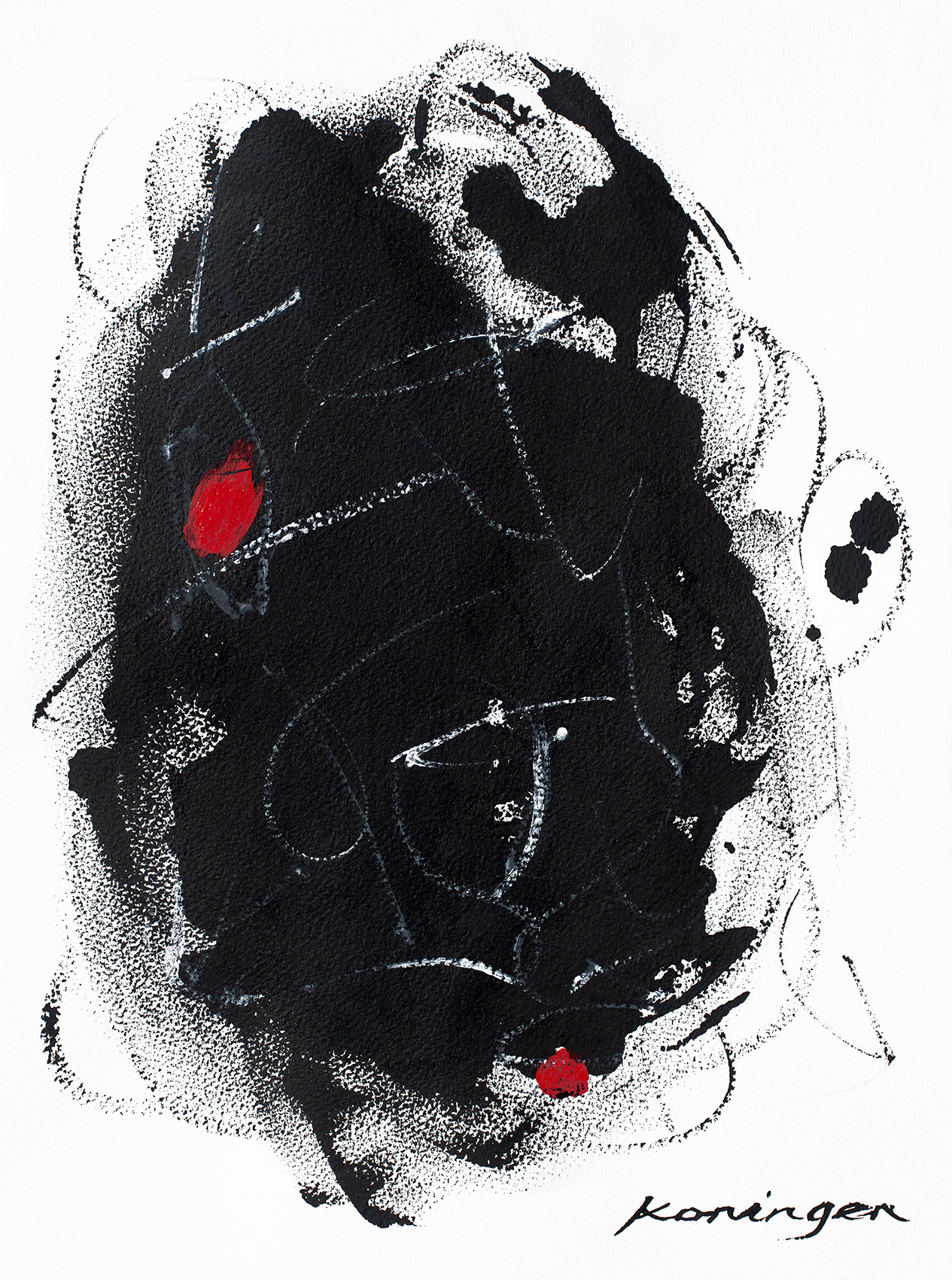 Black White no20 Ink on watercolour paper with red marks 38cm x 28cm 15″ x 11″