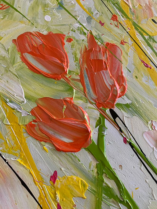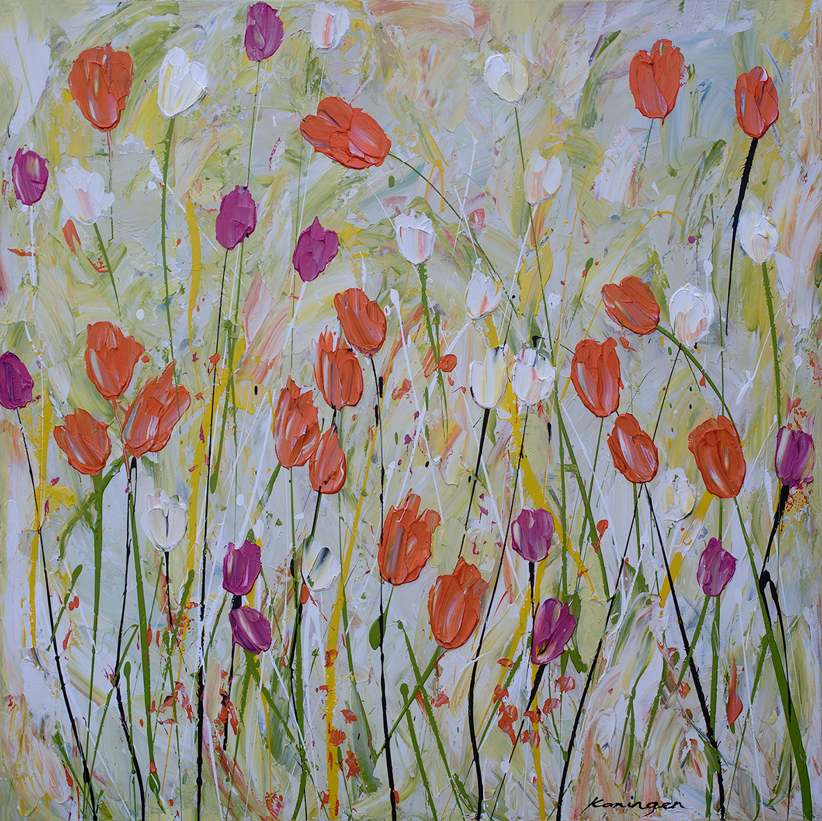 Dancing Tulips Polymer Acrylic on Canvas 122cm x 122cm 48″ x 48″