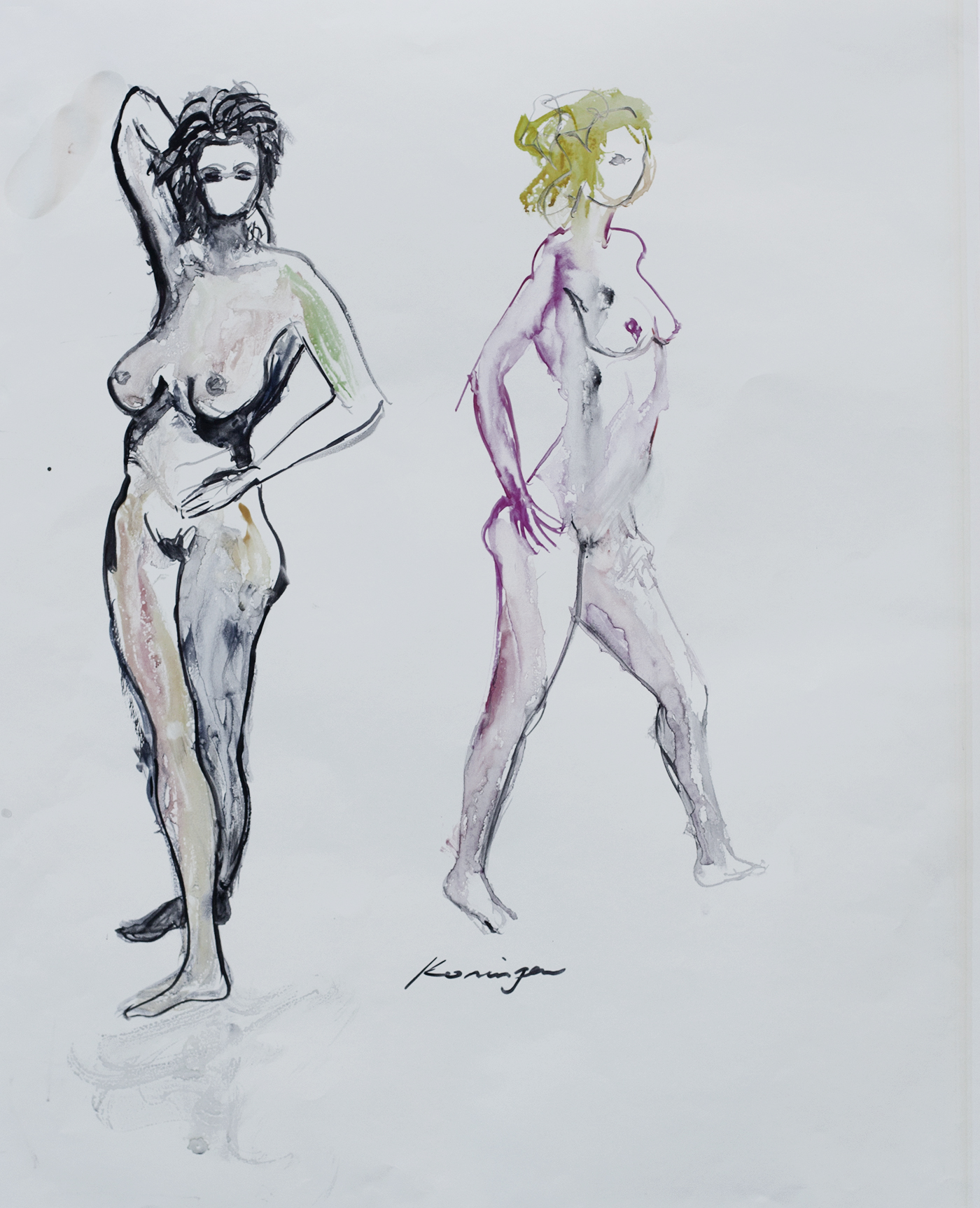 Girls in the Studio Ink and watercolour on paper 60cm x 50cm
