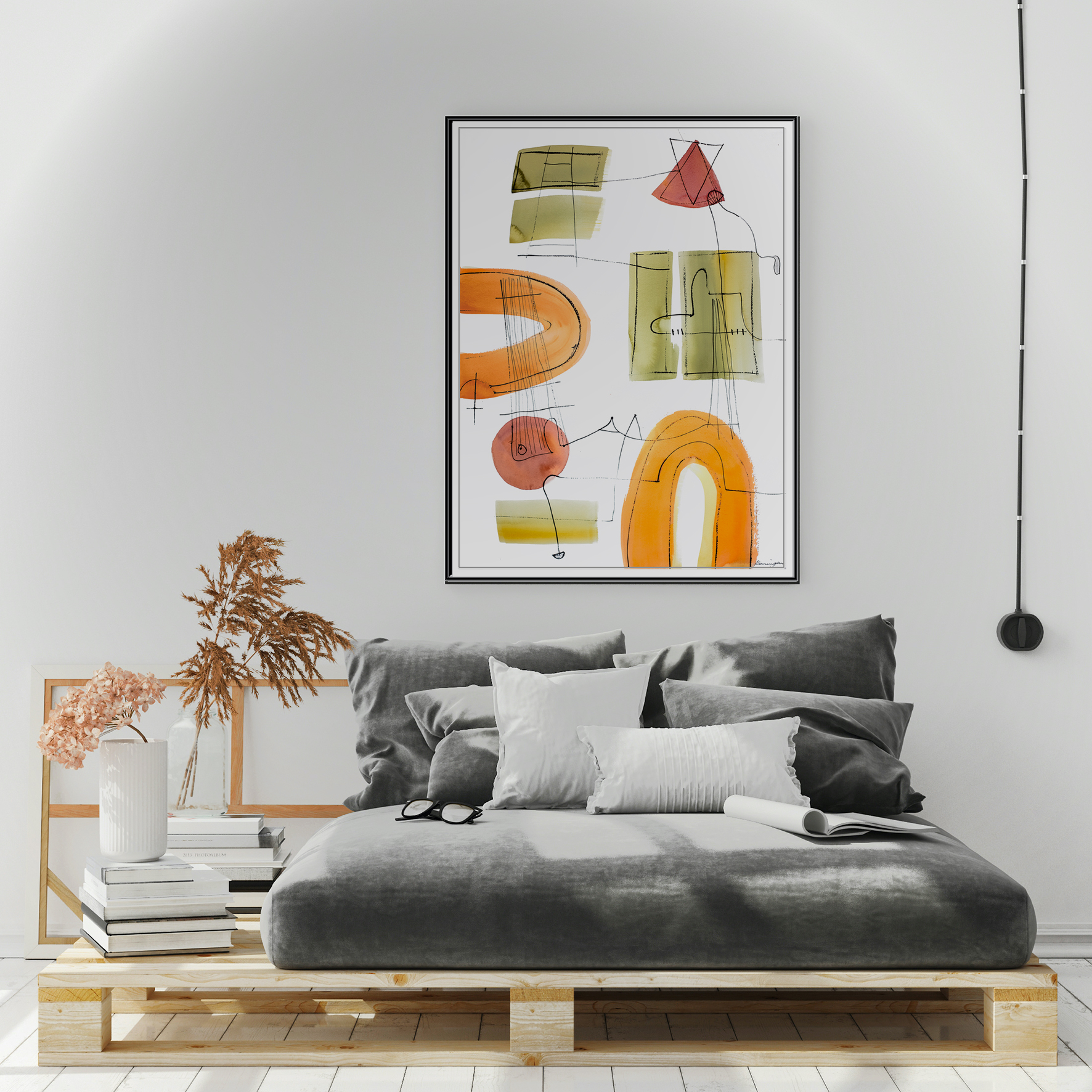 Abstract watercolour and fine ink markings on 300gm arches cotton Paper